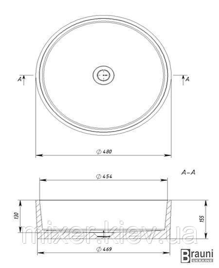 Круглый умывальник на столешницу Sofia.Размер 48*48*15,5 см. Материал: Литой камень.